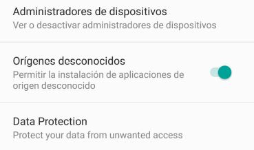 Para poder instalar el aplicativo, la opción de instalación de aplicaciones de origen desconocido, debe ser habilitada.
